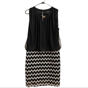 Gloria fringed metallic-jacquard kaftan mini dress. Perceptions Black White Sleeveless Flare Dress Petite Size 14P.